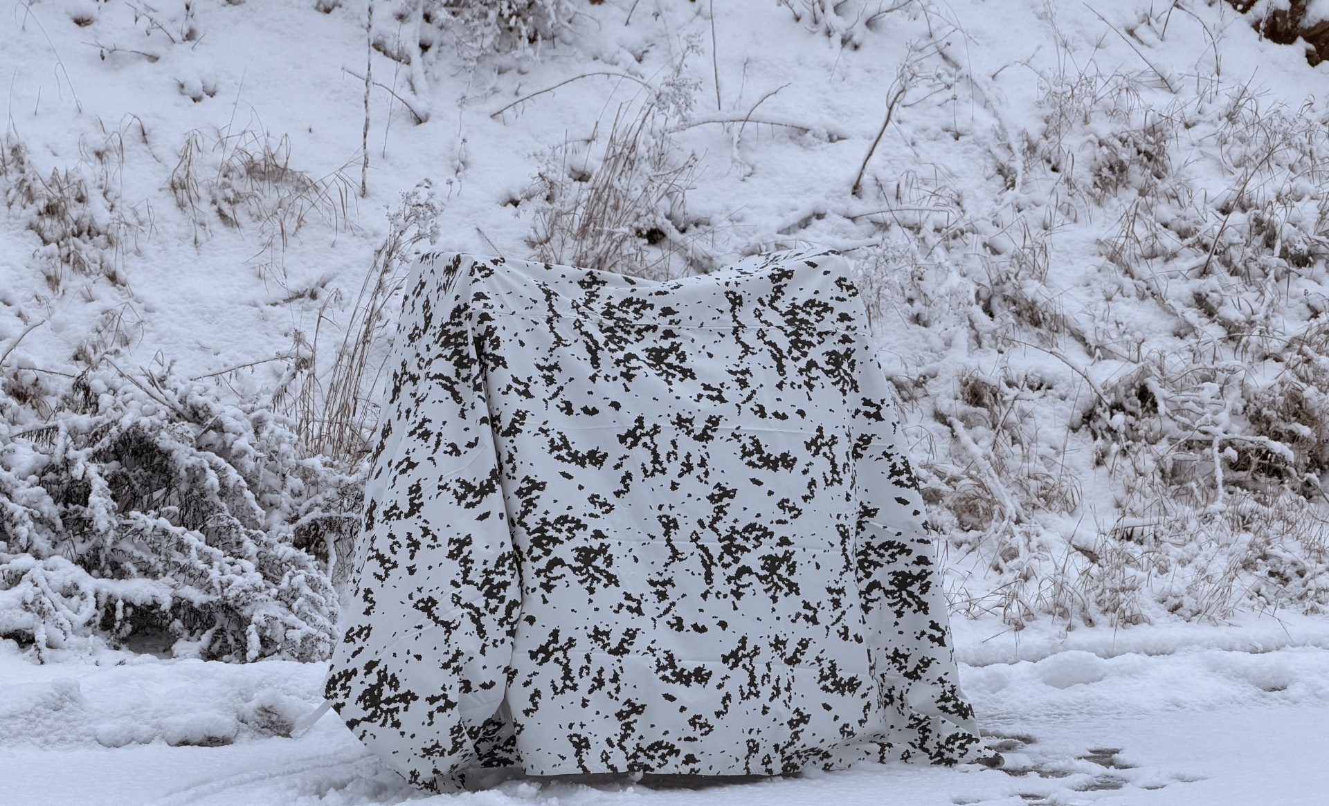 in Form eines Schräg-/Spitzdaches, Schlafsacküberzug oder einfach zum Abdecken und Tarnen von Ausrüstung.