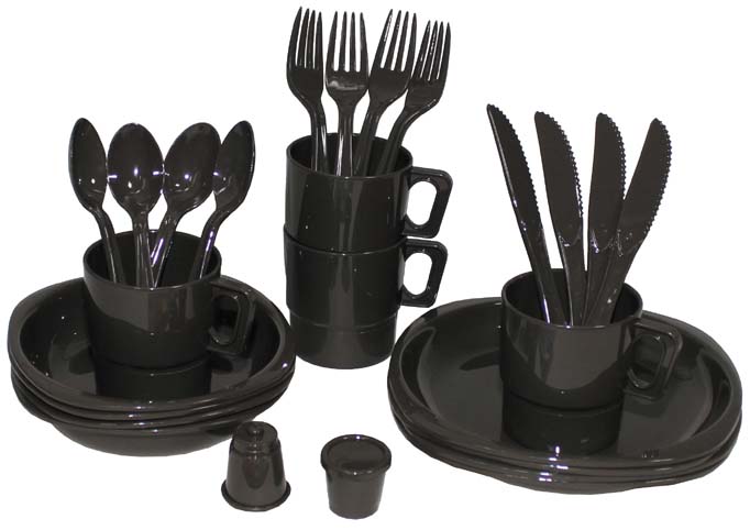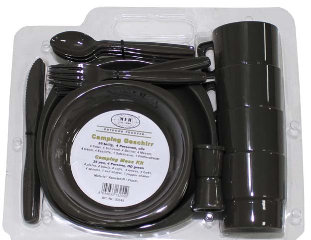 Camping Kunststoffgeschirr 26-teilig oliv