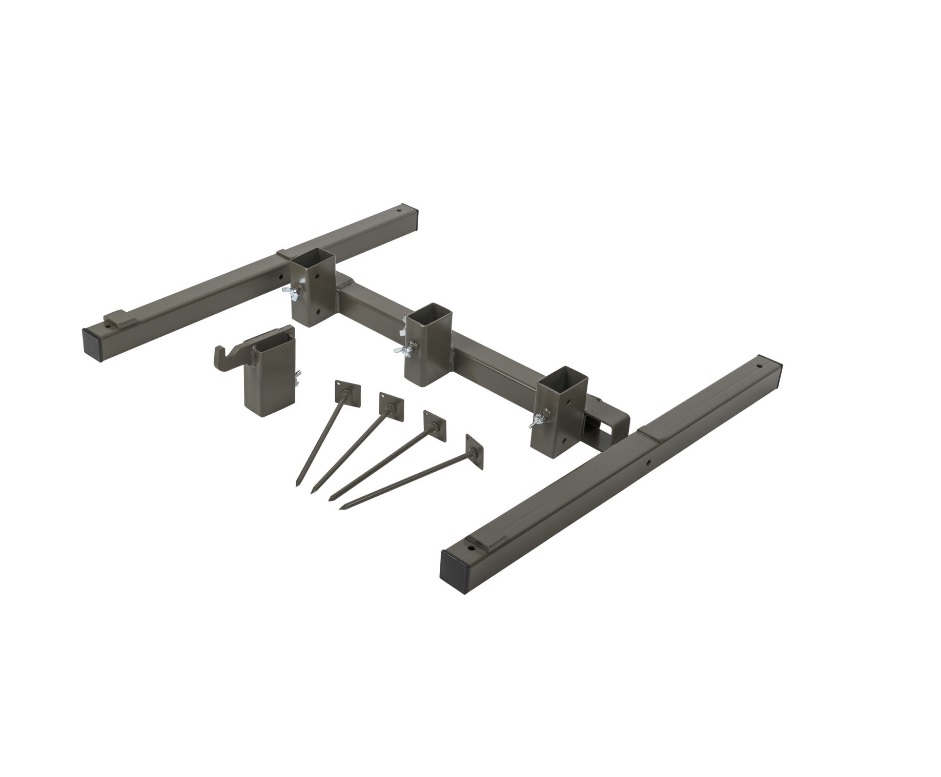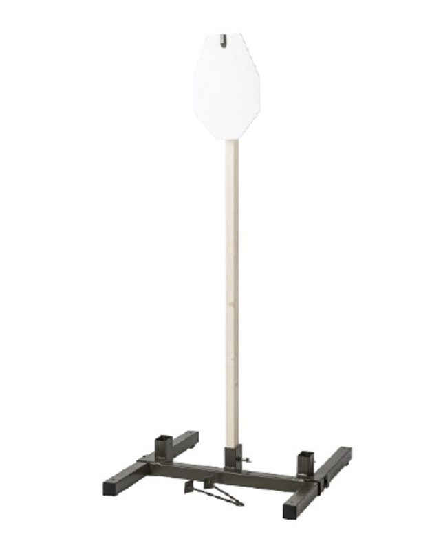 und einzelne Hardox 600-Gongs (in unserem Angebot erhältlich) oder Papiertargets (in unserem Angebot erhältlich) befestigen können. Der Ständer ist mit speziellen Stiften am Boden befestigt. Für die Montage des Ständers wird kein Werkzeug benötigt.