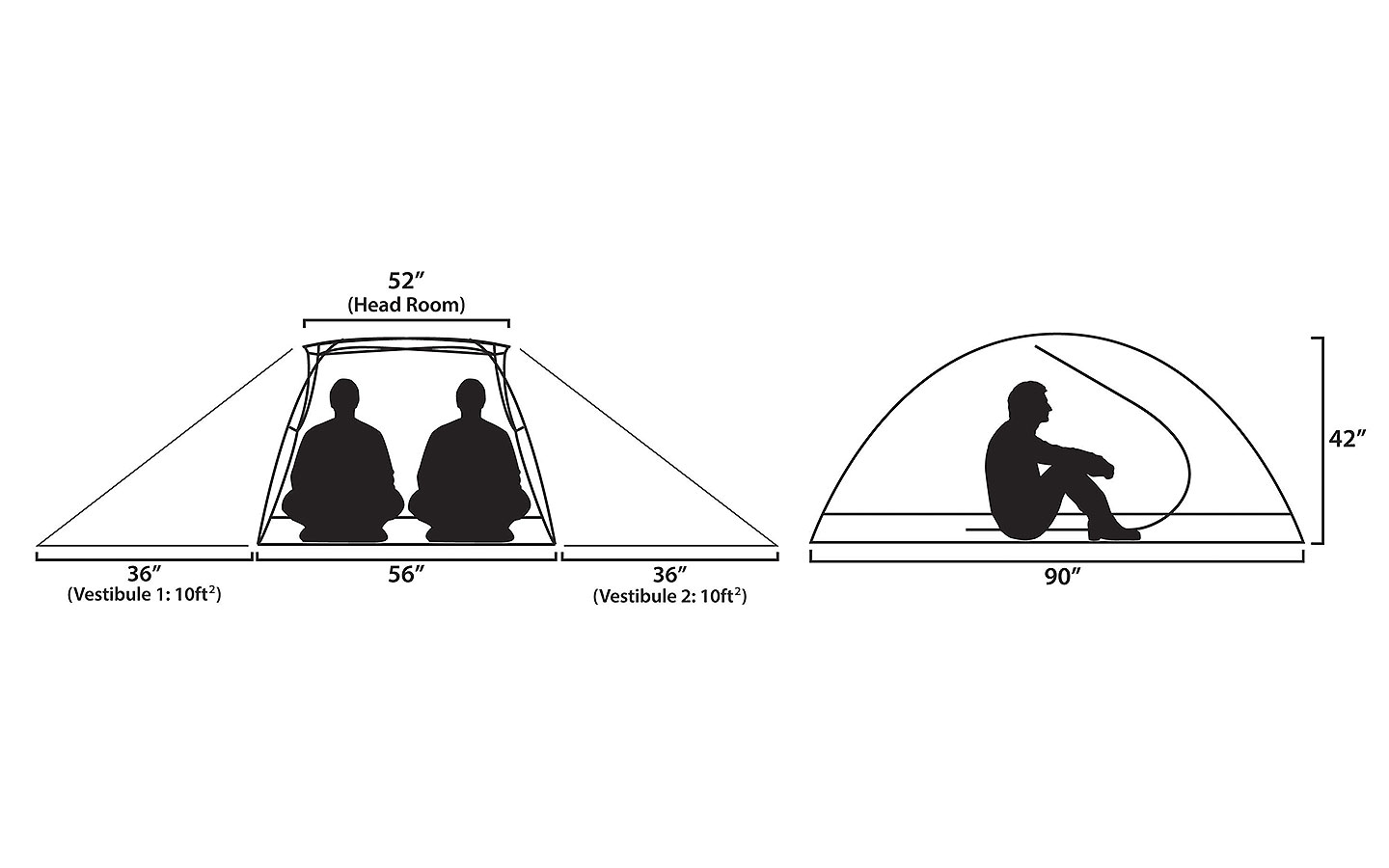 ZELTABMESSUNGEN: 229 x 142 x 107 cm (siehe Abbildung)