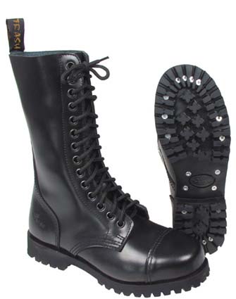 Pure Trash 14-Loch Stiefel schwarz mit Stahlkappe und Schrauben