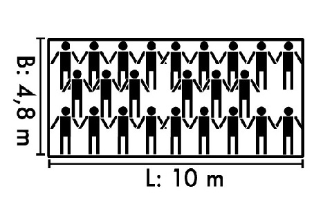 Rechteckige Grundfläche: 48 qm (L=10 m x B=4,8 m)