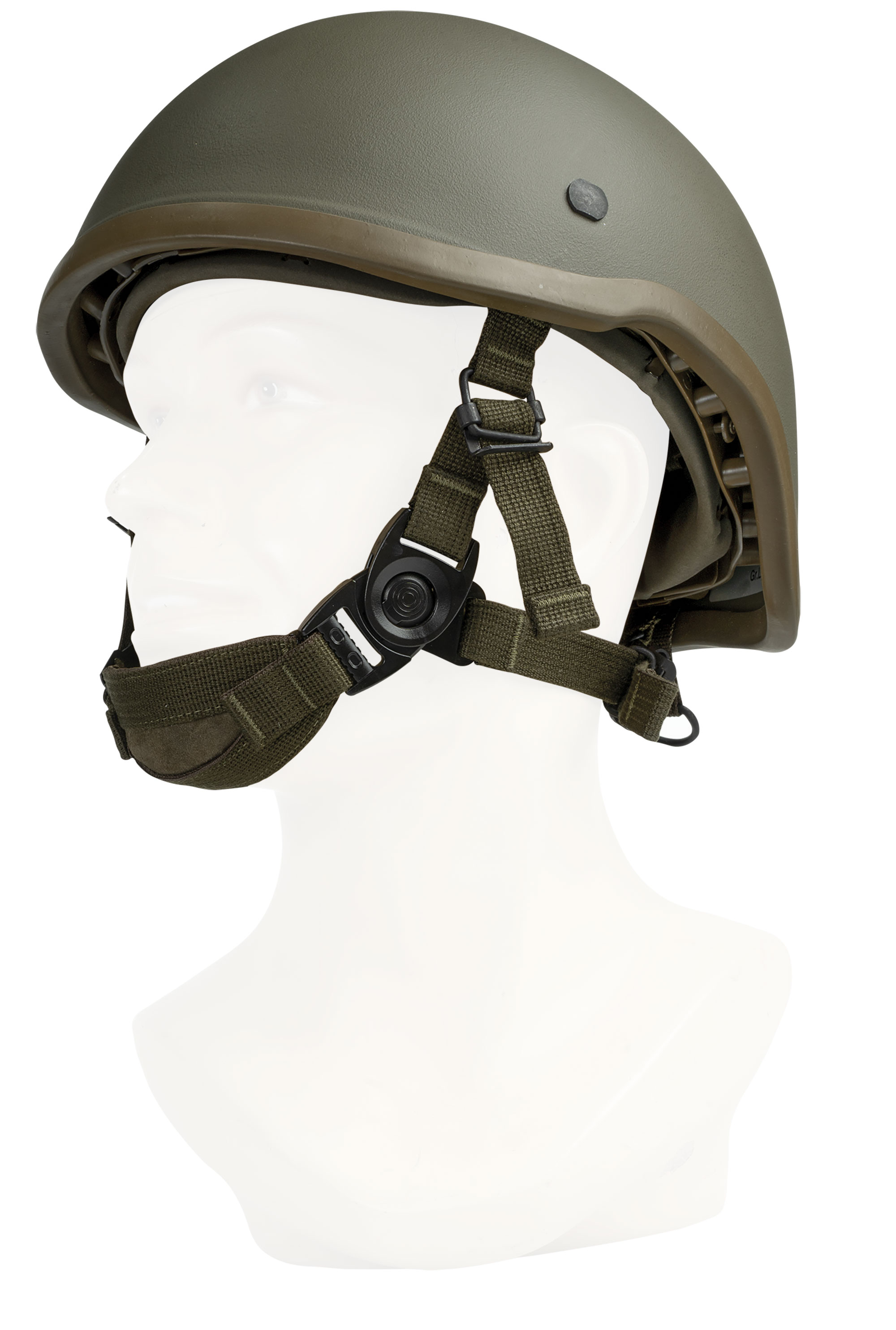 Für erhöhte Sicherheit des Gefechtshelmes sorgt der 3-Punkt-Kinnriemen mit Zwei-Wege-Schnellverschluss.