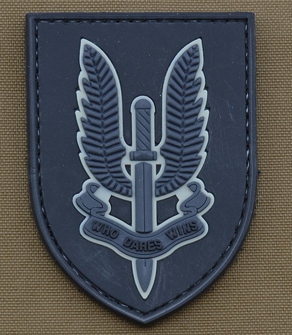 SAS Who Dares Wins Black PVC Velcro patch