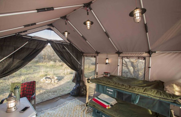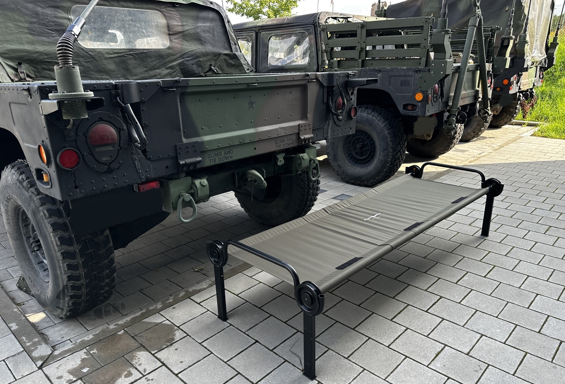 Zubehör erhältlich, wie beispielsweise Beinverlängerungen, Moskitonetz und Seitentaschen